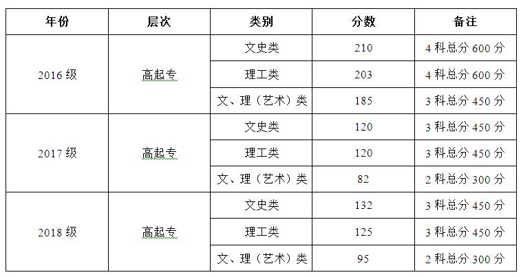 附:重庆市近三年成人高校招生录取最低控制分数线(部分),该表仅作参考。2019年最低录取控制分数线以重庆教育考试院公布为准。