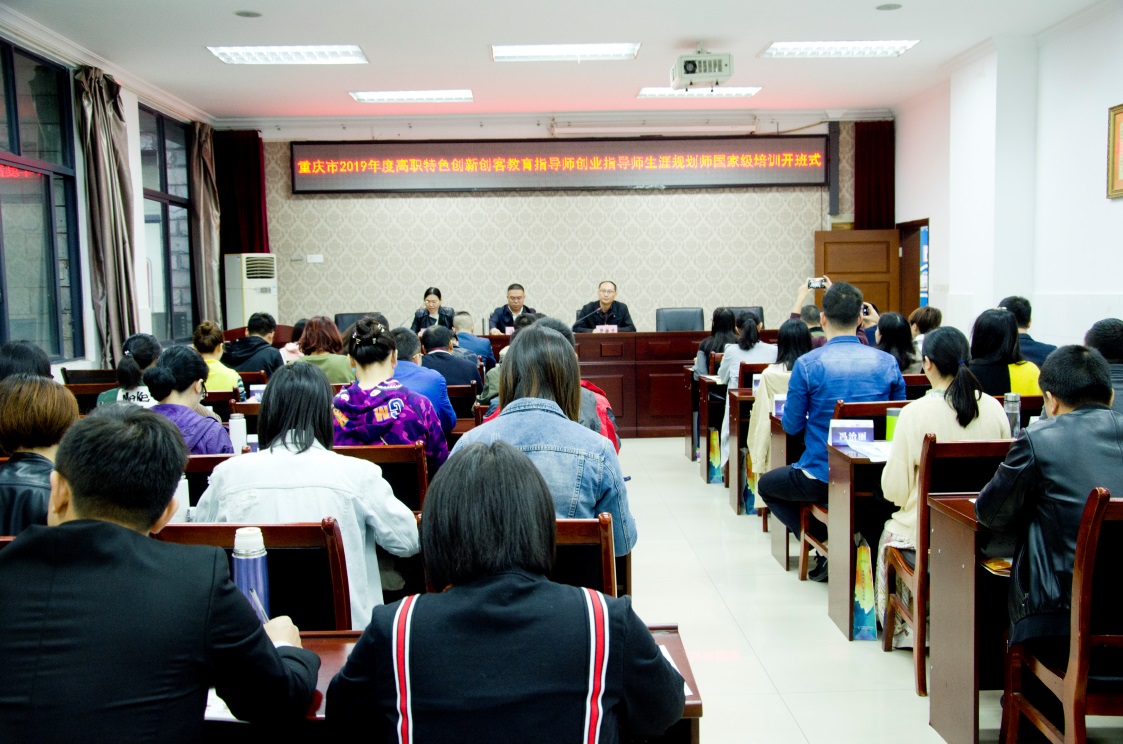 10月21日上午,重庆市2019年度职业院校教师素质提高计划高职特色创新项目创业指导师与生涯规划指导师国家级培训班在我校顺利开班,来自重庆市36所高职院校的50名老师参加培训学习。