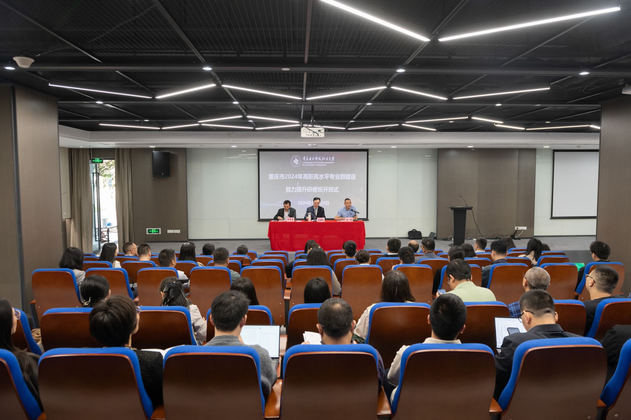 2024年10月28日,重庆市2024年高职高水平专业群建设能力提升研修班在重庆电子科技职业大学两江校区开班。人工智能与大数据学院院长武春岭教授、培训与继续教育学院综合科负责人明伟,本次培训教学班主任郑孝宗,以及来自全市各高职院校的70余名专业建设负责人参加了开班式。