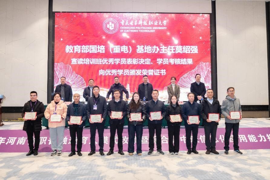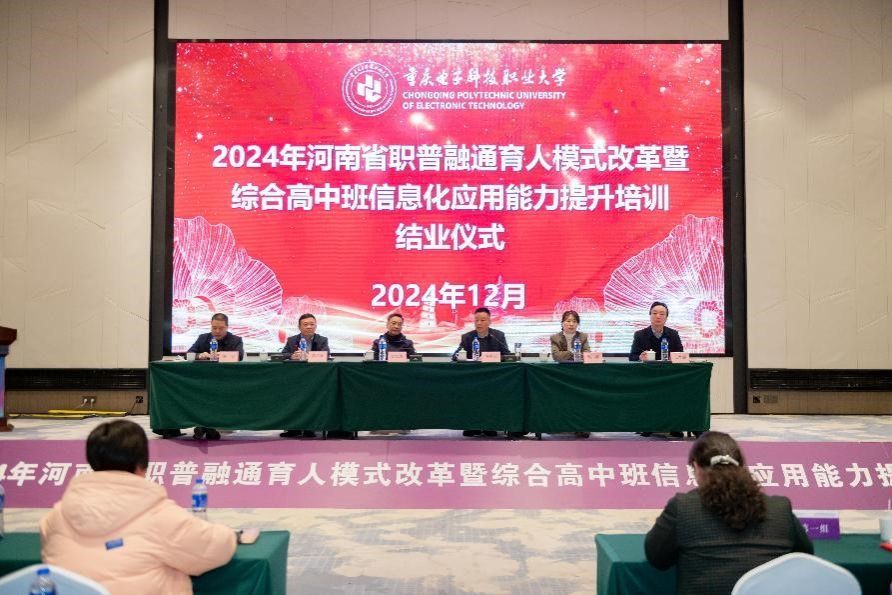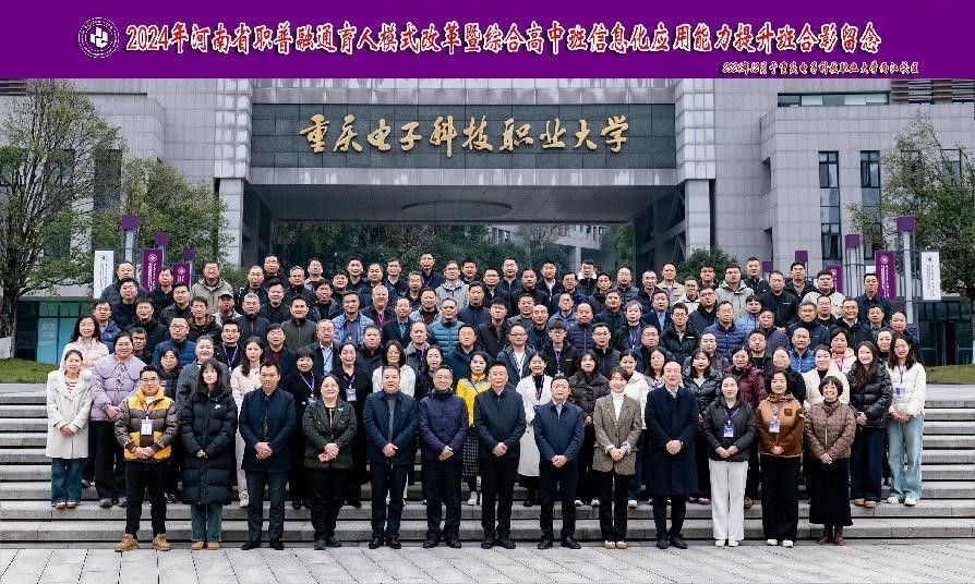 为期5天的2024年河南省职普融通育人模式改革暨综合高中班信息化应用能力提升培训班于1222-26日在两江校区举行,河南省教育厅职业教育与成人教育处处长张家成、副处长刘娜;我校副校长刘成俊,人工智能与大数据学院院长武春岭,教育部国培(重电)基地办主任、职教师资培训学院书记兼院长莫绍强,基地办副主任张亚参加了25日举行的结业式。