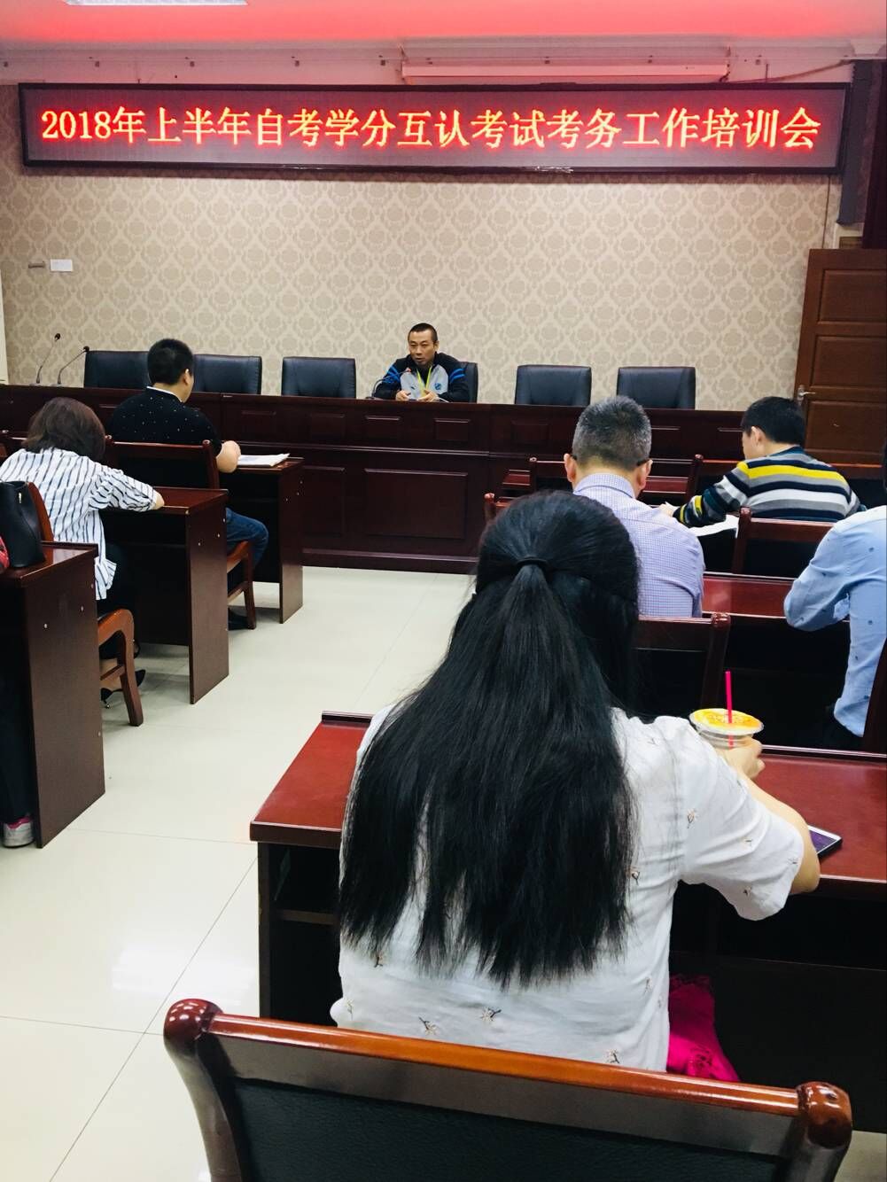 2018年上半年的专科衔接自考本科学分互认考试于5月12-13日在我校南校区教学楼2幢顺利进行。为进一步规范考务相关工作,5月12日上午8:00培训与继续教育学院党总支书记吴焱岷对参加本次学分互认考试监考教师进行考务工作培训会。