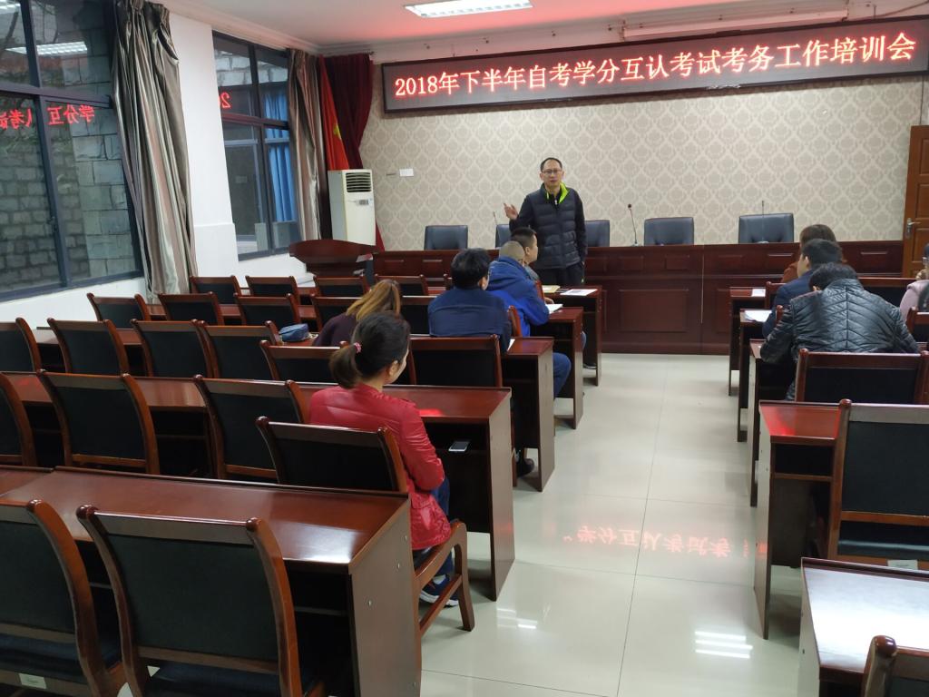 2018年下半年的专科衔接自考本科学分互认考试于11月10-11日在我校南校区教学楼2幢4楼顺利进行。为进一步规范考务相关工作,11月10日上午8:00培训与继续教育中心张铁力副主任对参加本次学分互认考试监考教师进行考务工作培训会。