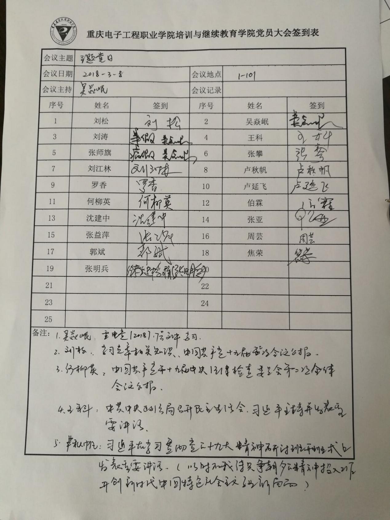 按照学校党委组织部的统一部署和安排,我们学院教师党支部于2018年3月8日下午14:30在1-101培训室召开党员大会,开展了主题党日活动,本次活动的主题是“深入学习党的十九大精神,为召开组织生活会和党员民主评议做好准备”。