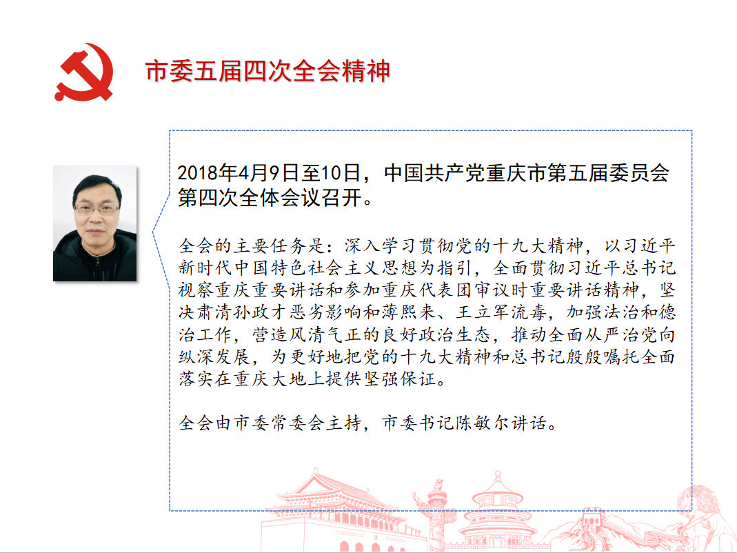 第四板块,先由张益萍组织传达市委五届四次全会精神。