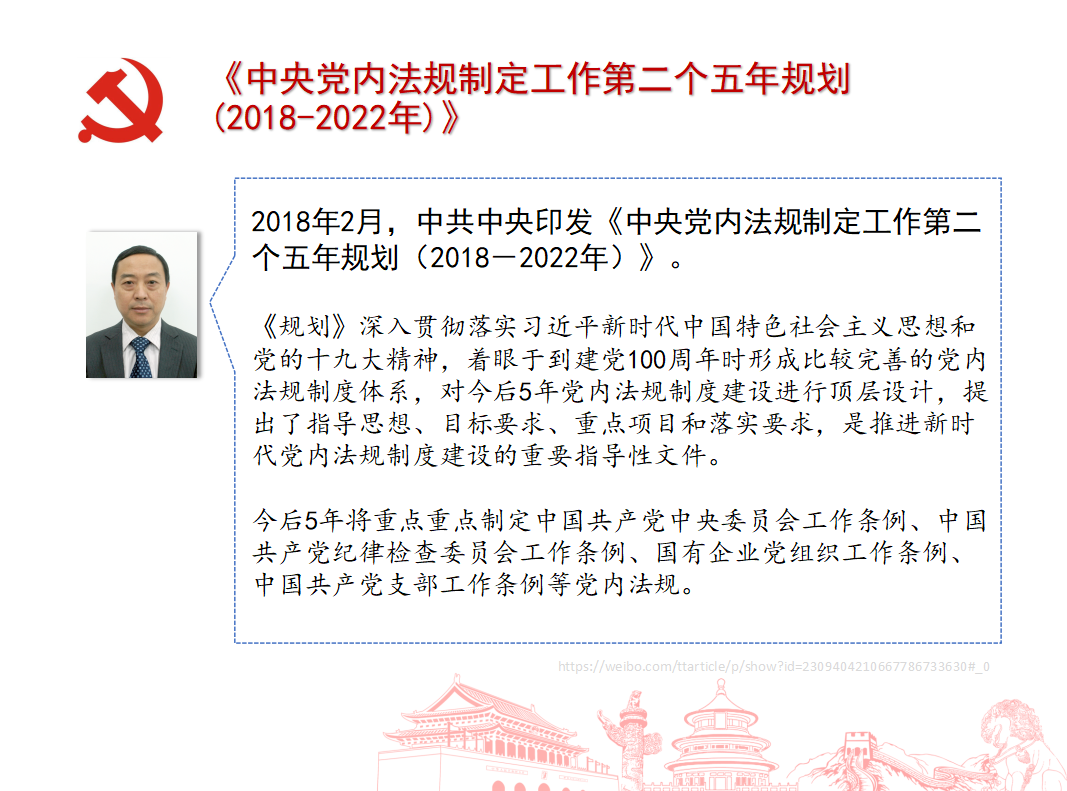 二、法律、党规:新宪法(2018年3月11日修正文本)、《中央党内法规制定工作第二个五年规划(2018-2022年)》和《中国共产党党务公开条例(试行)》沈建中