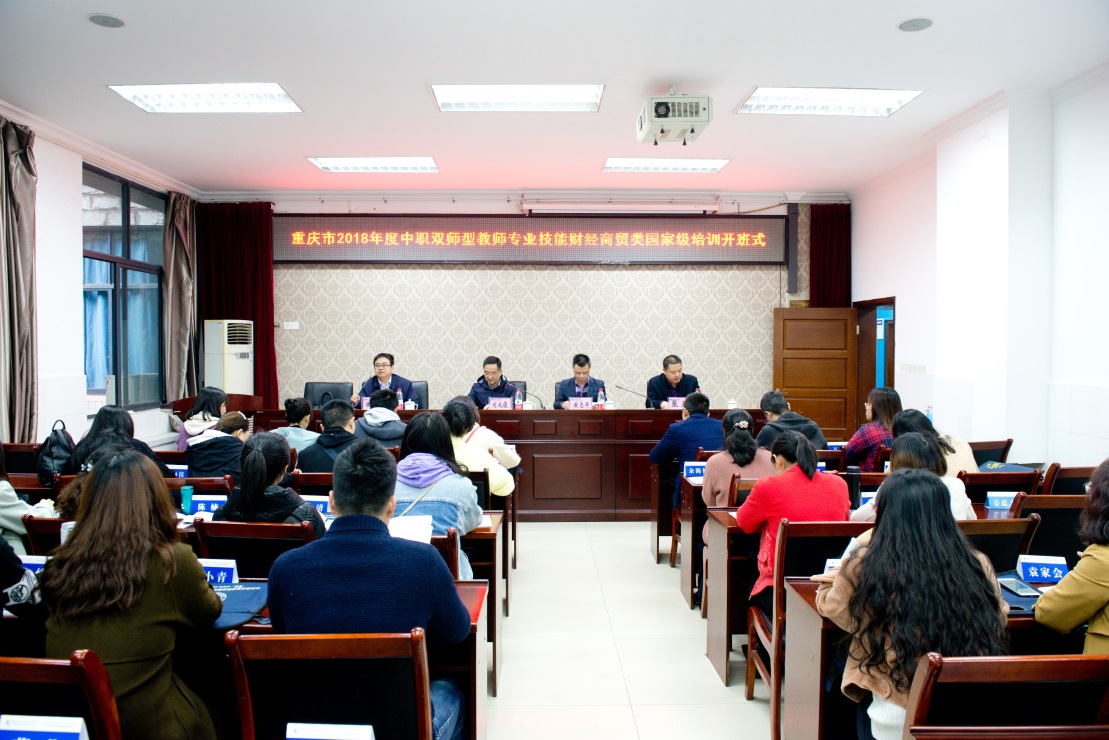 4月1日上午,我校国培基地承办的重庆市2018年度职业院校教师素质提高计划国家级培训项目——中职“双师型”教师专业技能财经商贸类市场营销、电子商务和物流管理专业培训班在我校举行,我校副校长刘成俊,财经管理学院院长黄志平,培训与继续教育中心主任陈志军,和来自我市22所中职学校教师参加了开班式,开班式由培训与继续教育中心继续教育科科长张亚主持。