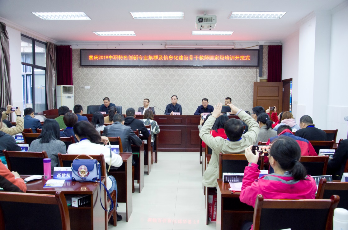 11月4日上午,重庆市2019年度职业院校教师素质提高计划中职特色创新项目专业集群及信息化建设(不限专业)国家级培训班在我校开班,来自重庆市30余所中职学校的50名老师参加培训学习。