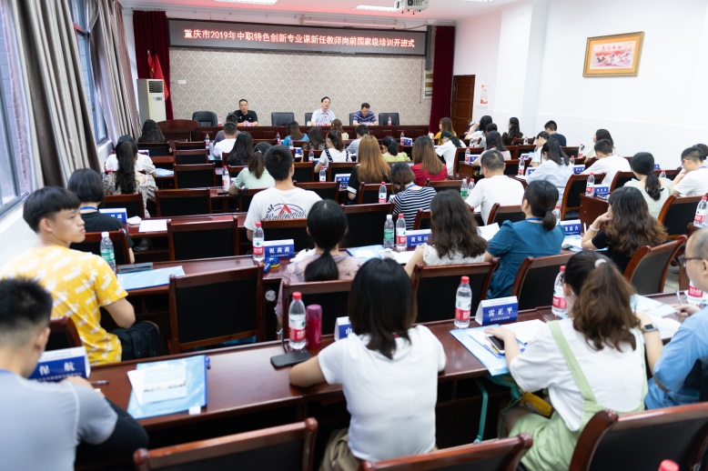 8月6日上午,重庆市2019年度职业院校教师素质提高计划中职特色创新项目专业课新任教师岗前国家级培训班在我校开班,来自重庆市36所中职学校的60名老师参加培训学习。