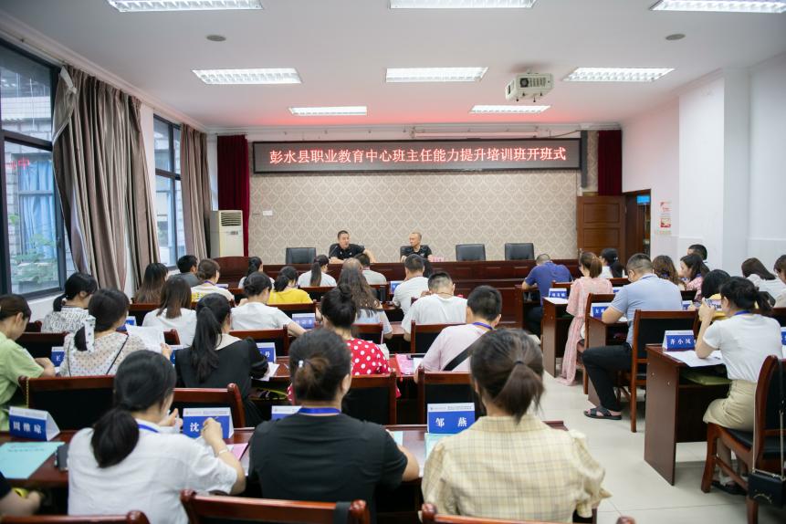 7月13日上午,重庆市2020年度精准扶贫项目彭水县职业教育中心班主任能力提升国家级培训班在南校区1-101室举行,彭水县职教中心副校长吴永强,以及来自彭水县职教中心的50名老师参加开班式。
