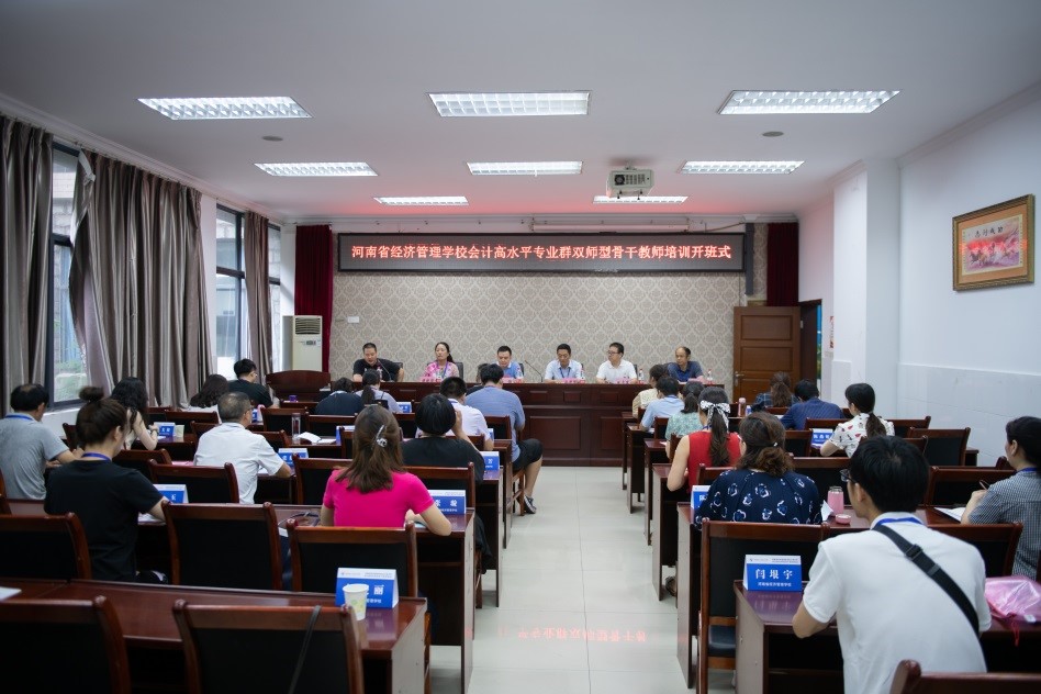 2021年7月17日上午,河南省经济管理学校会计高水平专业群双师型骨干教师培训班在我校南校区1-101室举行,河南省经济管理学校副校长徐世国,我校党委副书记、校长聂强教授,培训与继续教育中心主任陈志军,以及来自河南省经济管理学校财会金融系的30名学员参加开班式。开班式由国培基地办副主任张亚主持。