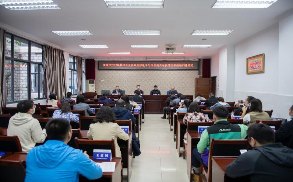 11月1日,重庆市2022年教师企业实践高职电子与信息类青年教师、中职教育与体育类教师国家级培训班在我校南校区1-101室开班,人工智能与大数据学院院长武春岭,体育与国防教育部部长徐然,培训与继续教育学院副院长李晓斌,以及来自我市中高职院校的近50名学员参加开班式。开班式由国培基地办副主任张亚主持。