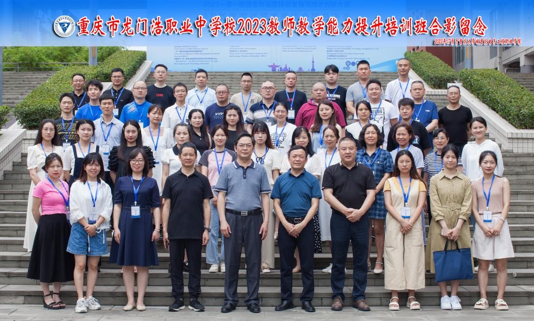 2023年7月7日下午,重庆市龙门浩职业中学校2023教师教学能力提升培训开班式在我校国培基地博学厅举行,重庆市龙门浩职业中学校长钟代文,校长助理、计算机部部长钟勤,我校培训与继续教育学院院长、基地办主任莫绍强,以及龙门浩职业中学校的50名教师参加开班式,开班式由基地办副主任张亚主持。