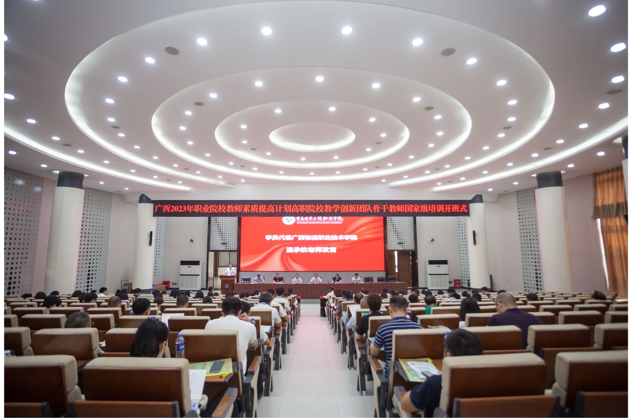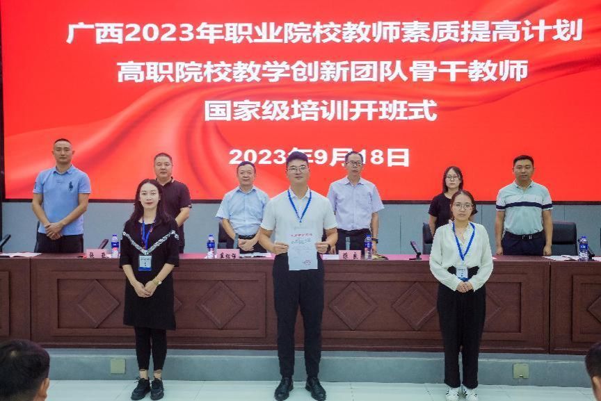 2023年9月18日上午,由我校国培基地承办的“广西2023年高职院校教学创新团队骨干教师国家级培训”在博远厅举行,教育部国培(重电)基地办主任、重电职教师资培训学院书记兼院长莫绍强,电子与物联网学院院长陈良,培训与继续教育学院综合科科长明伟,来自广西高职院校的100名教师及项目管理人员参加开班式。开班式由基地班副主任张亚主持。