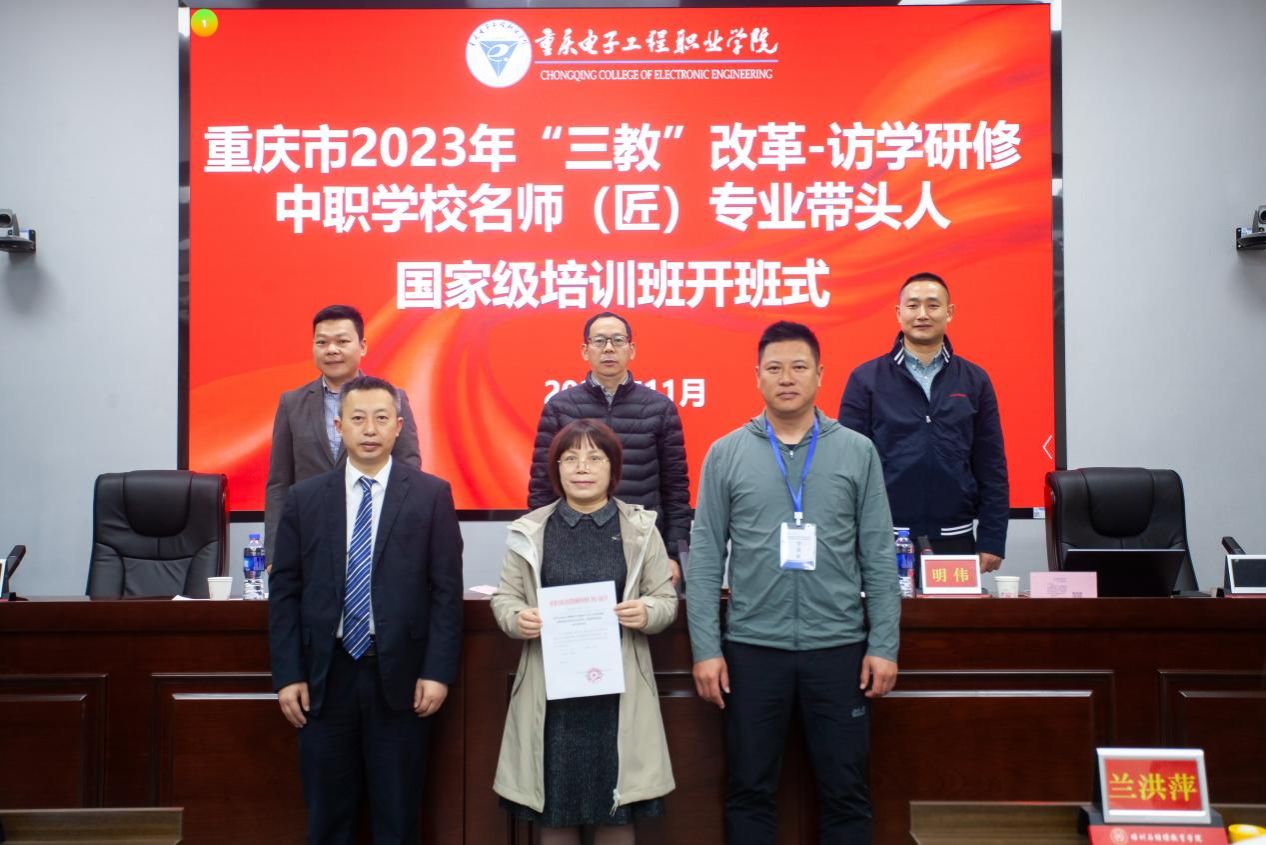 11月20日,由重庆市教委主办,我校承办的重庆市2023年“三教”改革-访学研修中职学校名师(匠)专业带头人国家级培训在我校国培基地博学厅开班,电子与物联网学院陈良院长,教育部国培(重电)基地办明伟科长、电子与物联网学院工程鉴定中心易国建主任,以及来自重庆市各中职学校的20名“名师(匠)、专业带头人”参加开班仪式。开班仪式由基地办明伟科长主持。