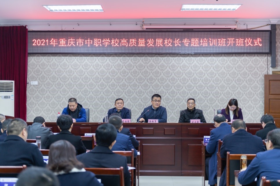 12月6日上午,2021年重庆市中职学校高质量发展校长专题培训班在我校南校区1-101室开班。重庆市教委职成处副处长徐柏泉,我校副校长刘成俊,校长培训基地办主任、培训与继续教育中心主任莫绍强,校长培训基地办副主任张亚,以及来自我市各中职学校的45名学员参加开班仪式。