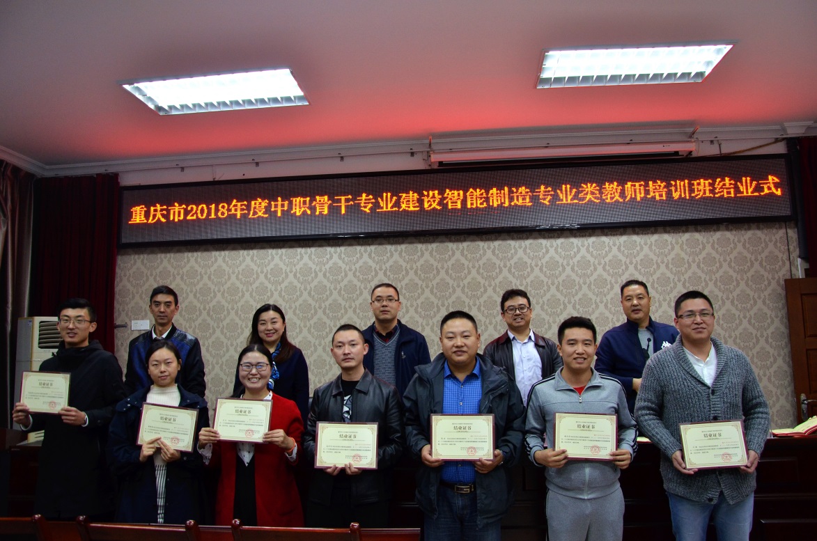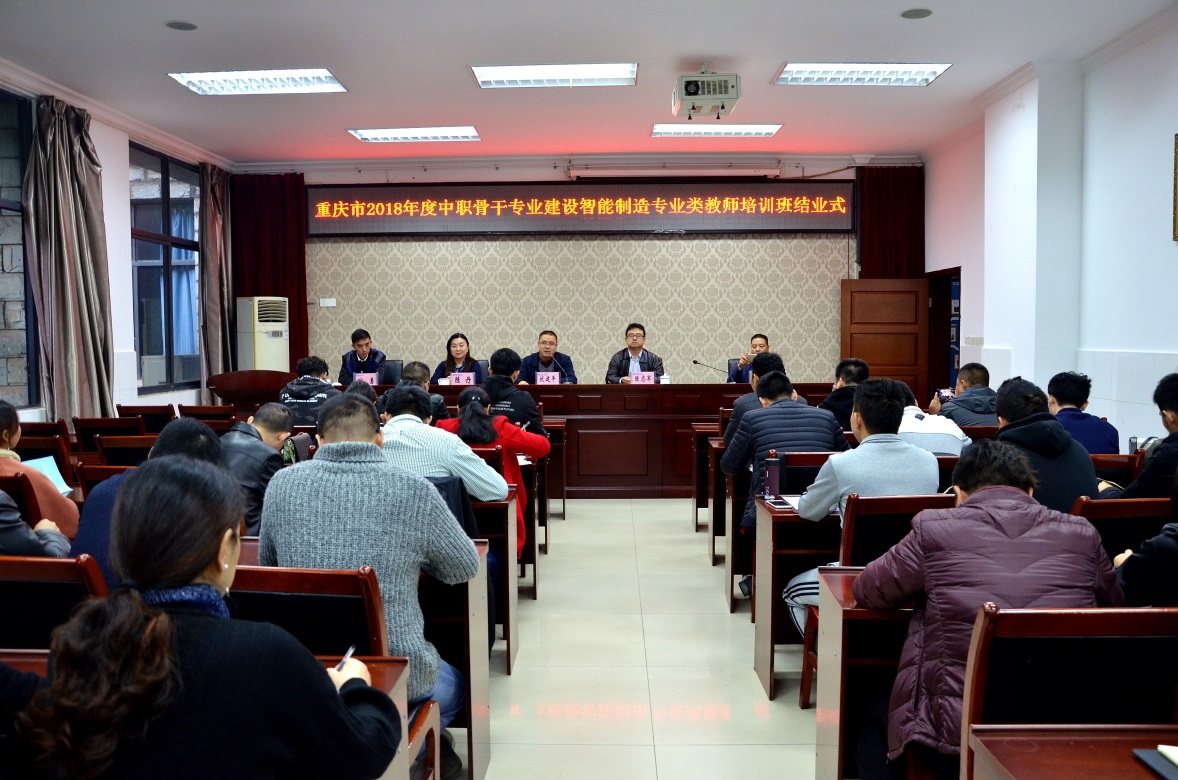10月20日上午,由重庆市教委主办,我校国培基地承办的“重庆市2018年中职骨干专业建设智能制造专业类教师培训班”在南校区1-101室圆满结业。培训与继续教育中心主任陈志军、智能制造与汽车学院副院长叶勇出席结业式,重庆市教委师范处伏建平老师、重庆职教师资培训集团陈丹老师到校指导市级职教师资培训项目并应邀出席结业式。结业式由培训与继续教育中心培训部主任张亚主持。