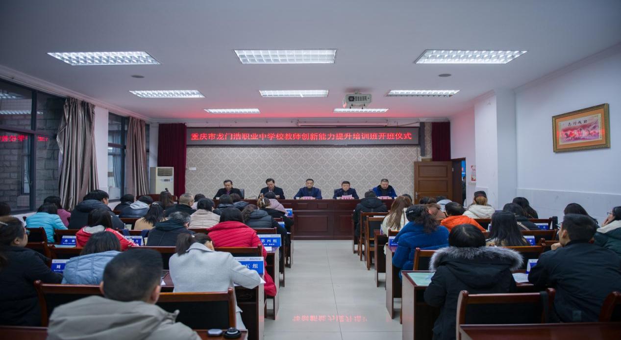 12月11日上午,重庆市龙门浩职业中学校教师创新能力提升培训班在我校南校区1-101室开班。重庆电子工程职业学院副校长刘成俊,重庆市龙门浩职业中学校长钟代文,重庆市龙门浩职业中学副校长李昌春,培训与继续教育中心主任莫绍强,国培基地办副主任张亚,以及来自重庆市龙门浩职业中学的50名学员参加了开班仪式。