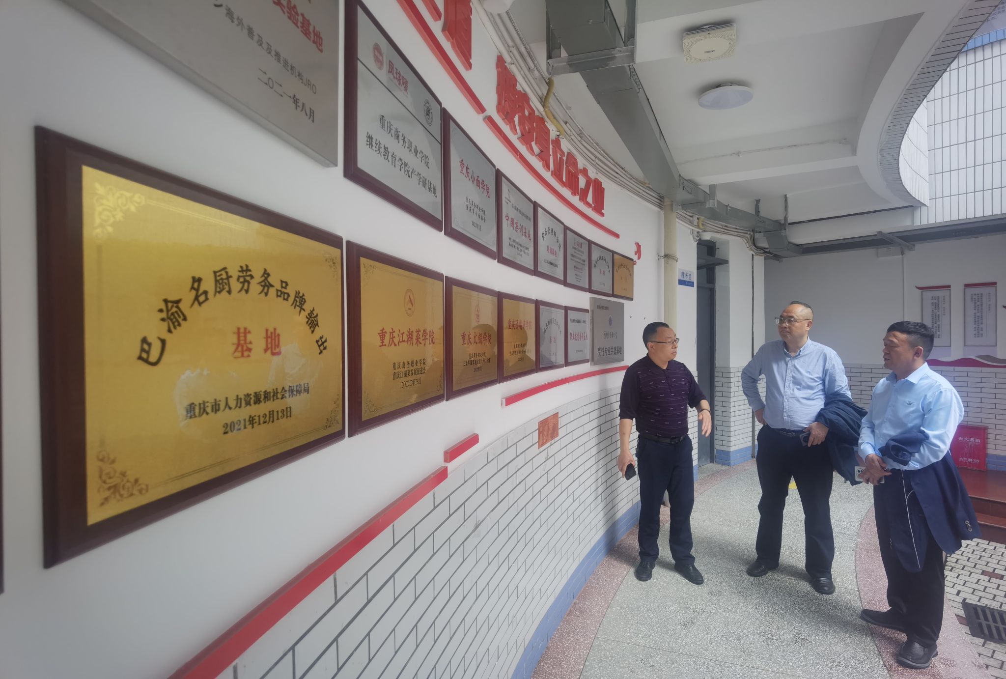 重庆商务职业学院继续教育学院办学在该校的南岸校区。建有国家职业技能鉴定所,是国家级高技能人才培训基地,是重庆市中(西)式烹调、中(西)式面点集中鉴定单位和现代学徒制和新型学徒制培训单位,年培训鉴定人次20000人以上。在对方一行陪同下,参观了鉴定所、培训基地及小面学院等场地场所。