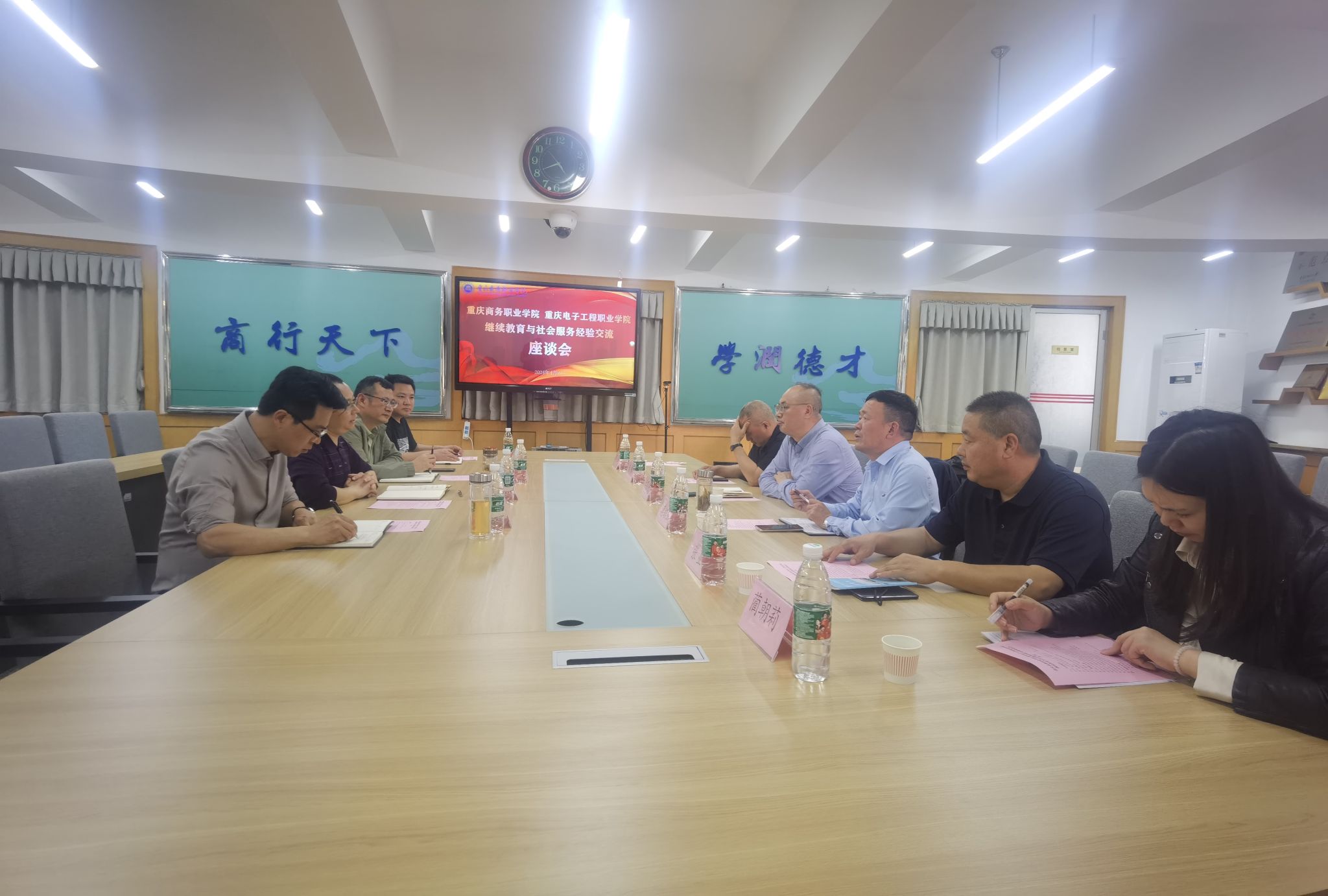 随后座谈会上,院长蔡顺林对重电领导及老师到来表示欢迎,介绍了重庆商务职业学院继续教育学院整体业务结构及部门运行情况,特别是近三年业务数据、具体做法和激励机制作了详细的分享;副校长幸昆仑对学校、培训与继续教育学院、国培基地、校长培训基地等进行介绍,并对培训与继续教育体制机制的顶层设计分享了思路和措施。最后双方就开展具体项目合作、职教师资培训、乡村振兴人才培训、企业员工技能提升培训等业务及等级认定工作,进行了全面的详尽交流。助力了重电在继续教育管办分离下,完善激励机制,促进市场化运转,培训与继续教育工作提档升级。