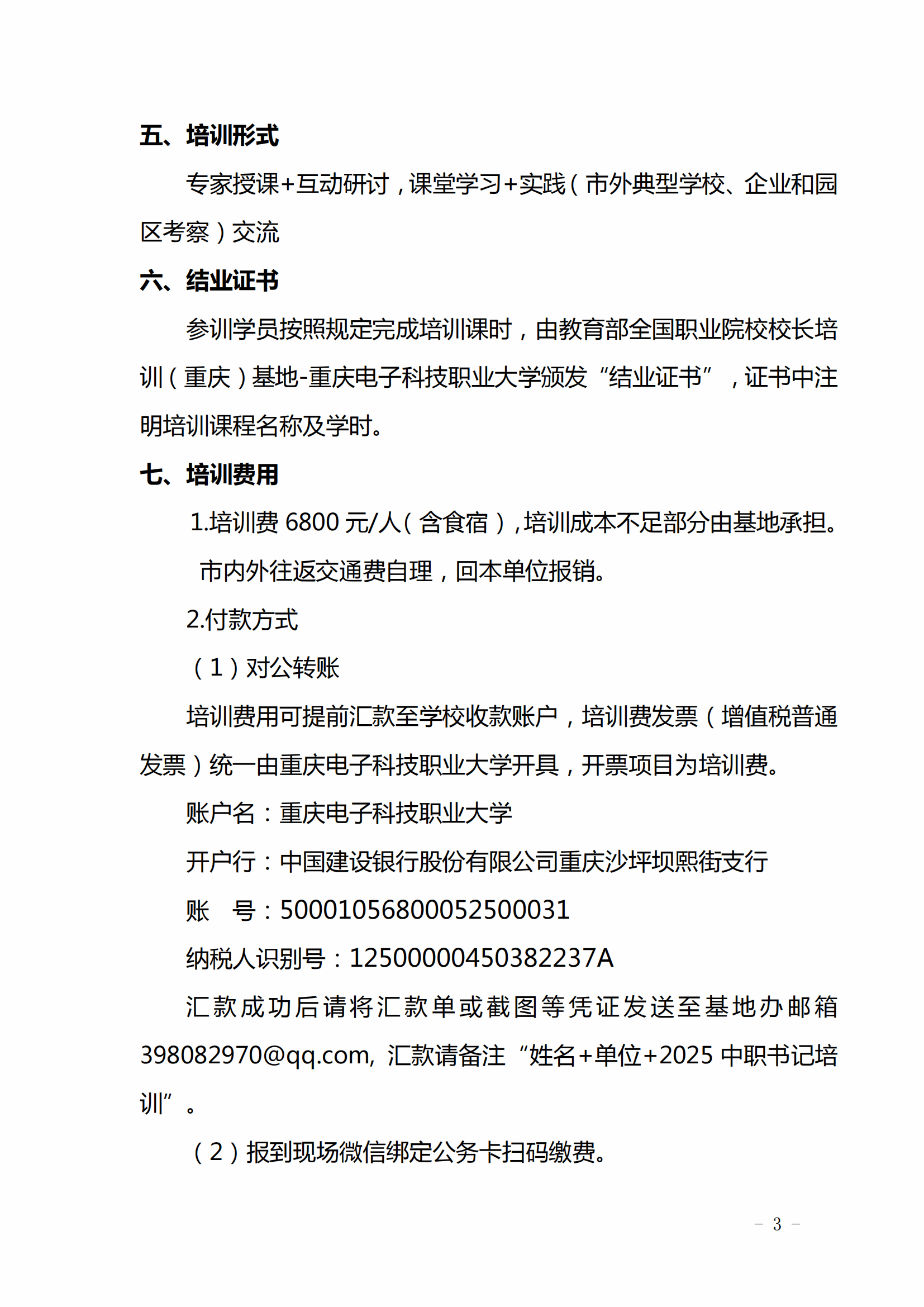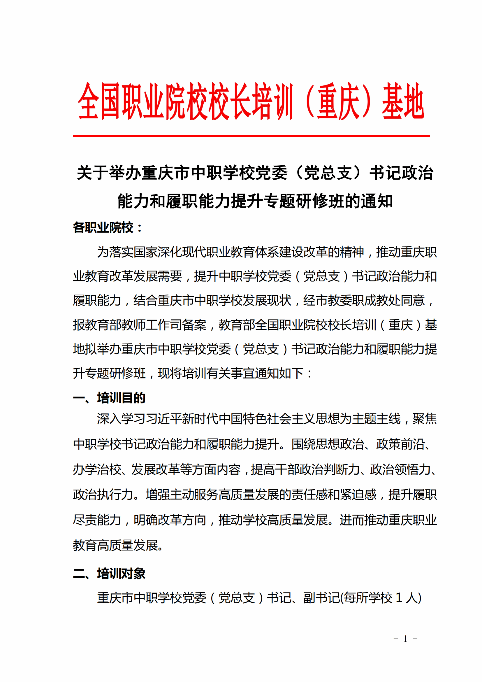 返回列表 关于举办重庆市中职学校党委(党总支)书记政治 能力和履职能力提升专题研修班的通知 日期:2025-04-01发布人:张明兵浏览量: 返回列表 上一篇 重庆电子科技职业大学技能等级认定 成绩公示 下一篇 重庆电子科技职业大学高等学历继续教育校外教学点公示