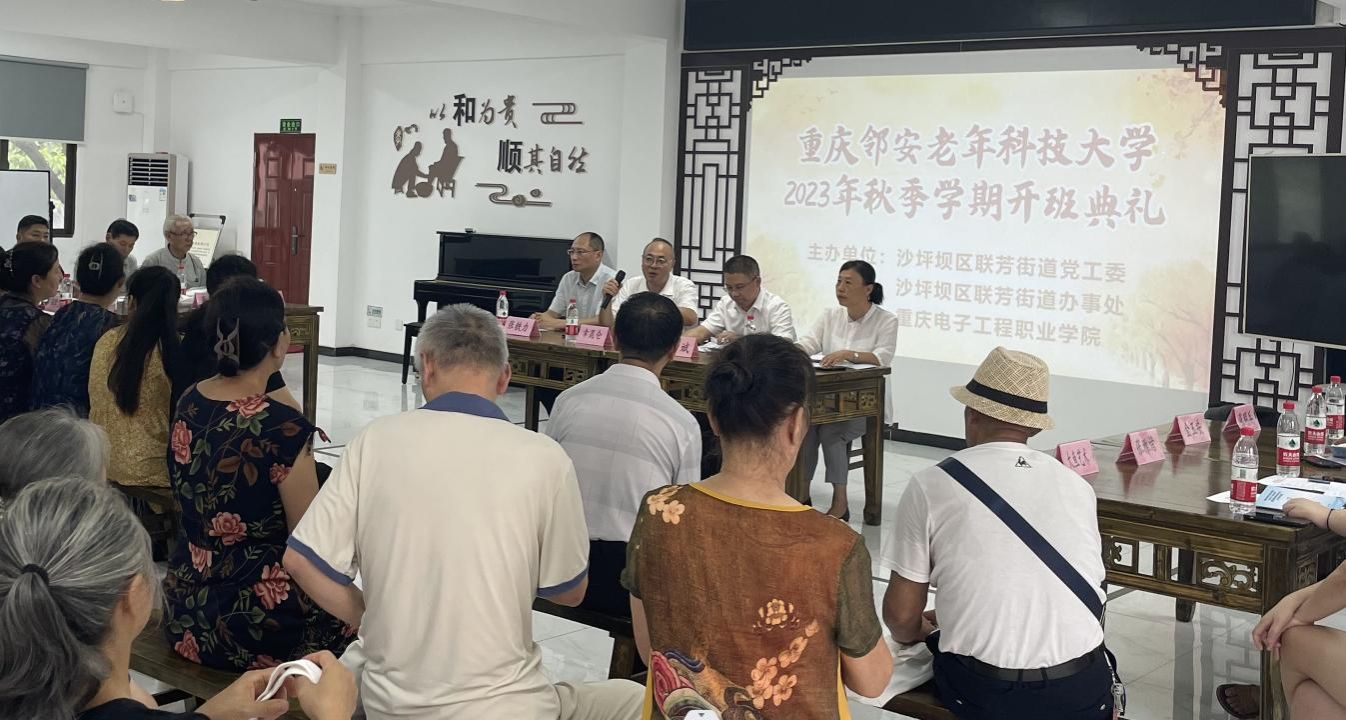 2023年9月18日下午,重庆市老年大学示范校(重庆电子工程职业学院) 2023年秋季学期开班典礼在沙坪坝区联芳街道双朝门社区顺利举行,参会的领导及嘉宾有我校副校长幸昆仑教授、沙坪坝区联芳街道党工委书记刘斌、学校人工智能与大数据学院党总支副书记张铁力、项目管理科科长刘江林、培训与继续教育学院张明兵老师出席典礼、教师代表、学员、街道社区教育专干(班主任)和教培机构负责人等100余人参加。开学典礼上,副校长幸昆仑教授首先对来参培的所有老年朋友表示欢迎,......